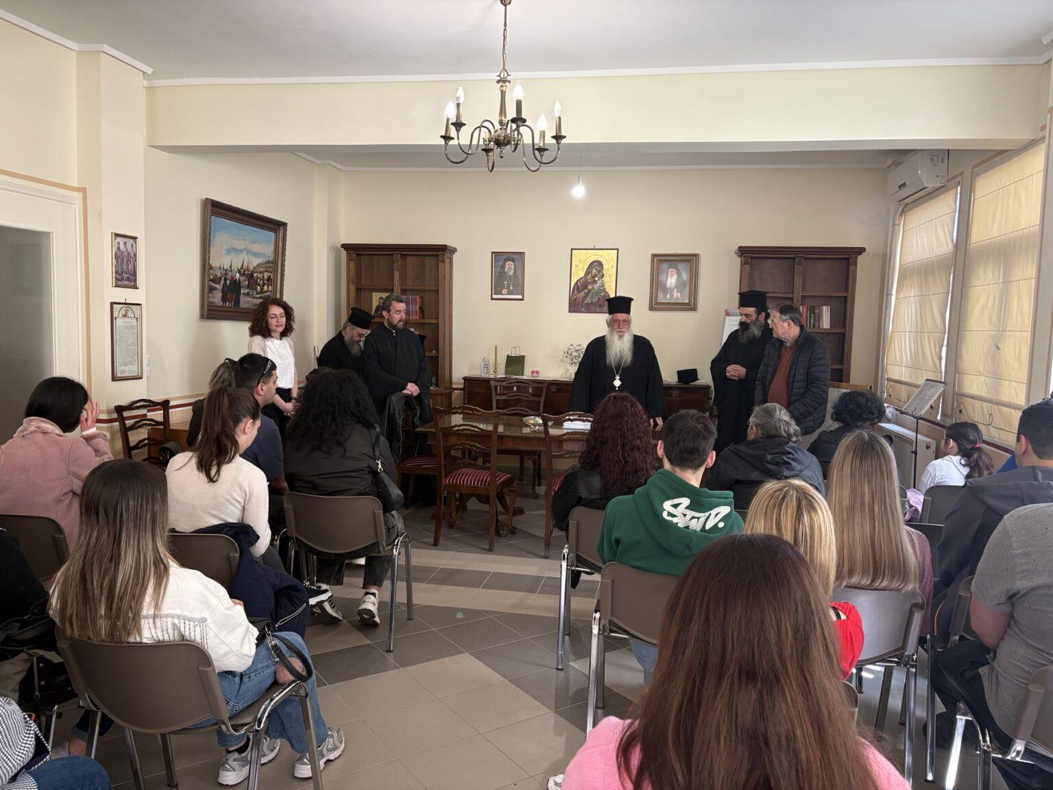 Στο πλαίσιο αυτής της δράσης, σήμερα, Μεγάλη Τετάρτη 8 Απριλίου 2026, ο Σεβασμιώτατος Ποιμενάρχης κ. Γεώργιος συναντήθηκε με 65 φοιτητές από την επαρχία Λεβαδείας, στην αίθουσα πολλαπλών χρήσεων του Κέντρου Γάμου και Οικογένειας, στα παλιά γραφεία της Μητροπόλεως.